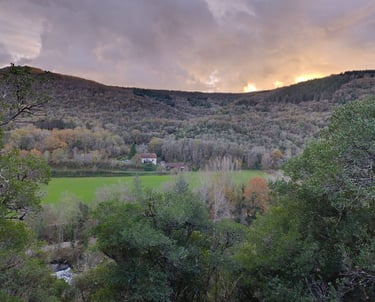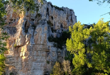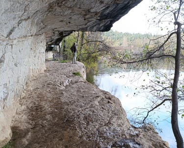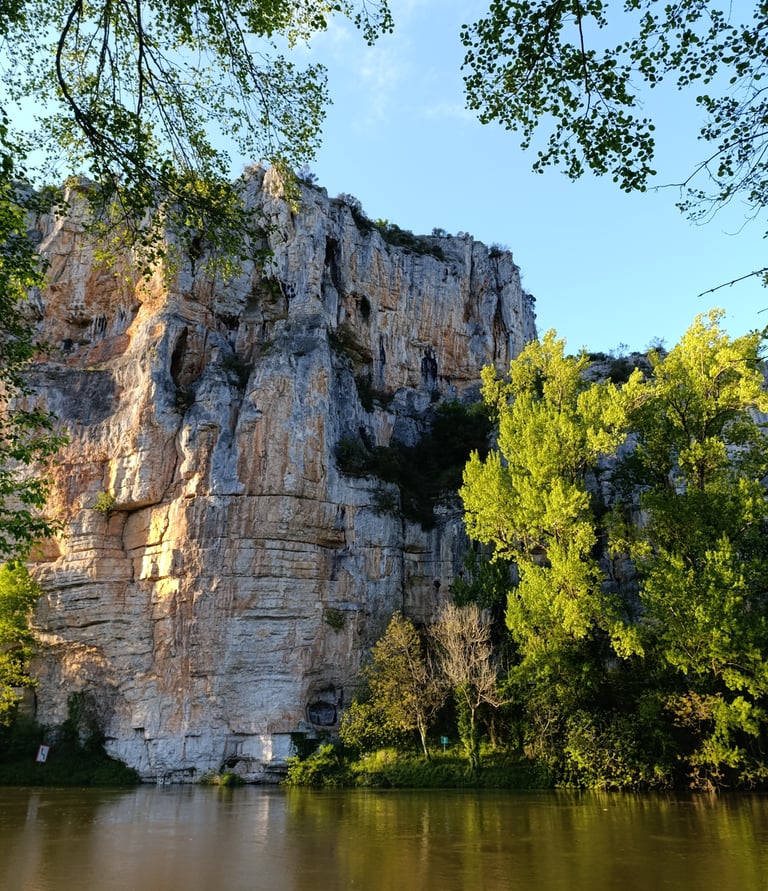 Chambre spacieuse de 4 personnes avec salle de bain privative . Vue sur la rivière et les falaises, idéale pour se détendre.